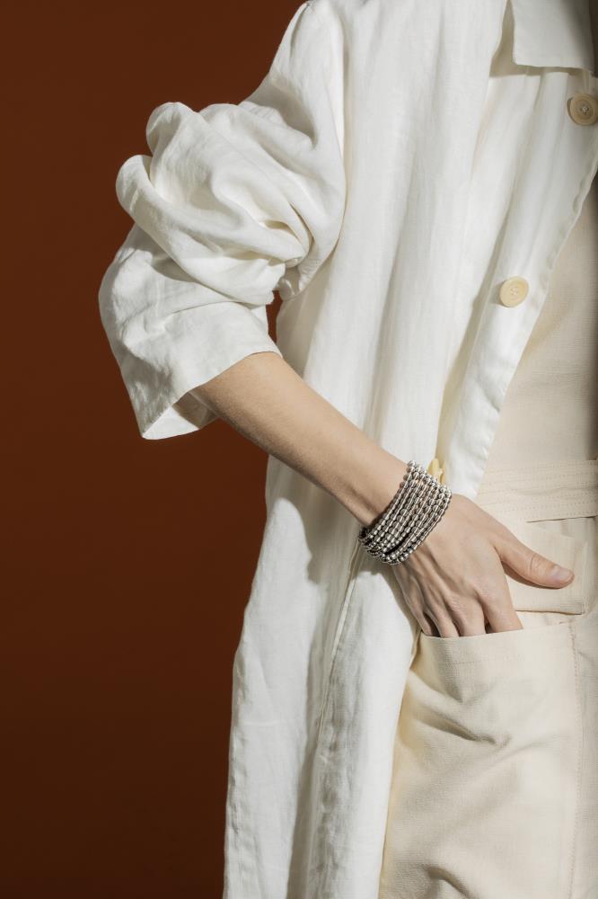 vermittelt dieses Armband ein leichtes, skulpturales Gefühl mit leuchtenden Reflexen,